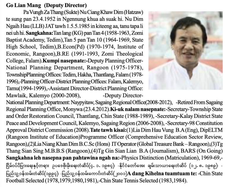 Tonzang khua ukpi Pu Hau Cin Khup (Sukte) leh Pi Vung Kho Man te sung panin 1.7.1918 ni-in Tonzang khua pi ah suak hi. Sanggam laizom (7) lak pan a nautum pen ahi hi. Nulehpa deihsakna tawh Nu Ciin Ngaih Lian tawh kiteeng a, tapa 3 leh tanu 2 nei uh hi. Sangkahna: (1)…